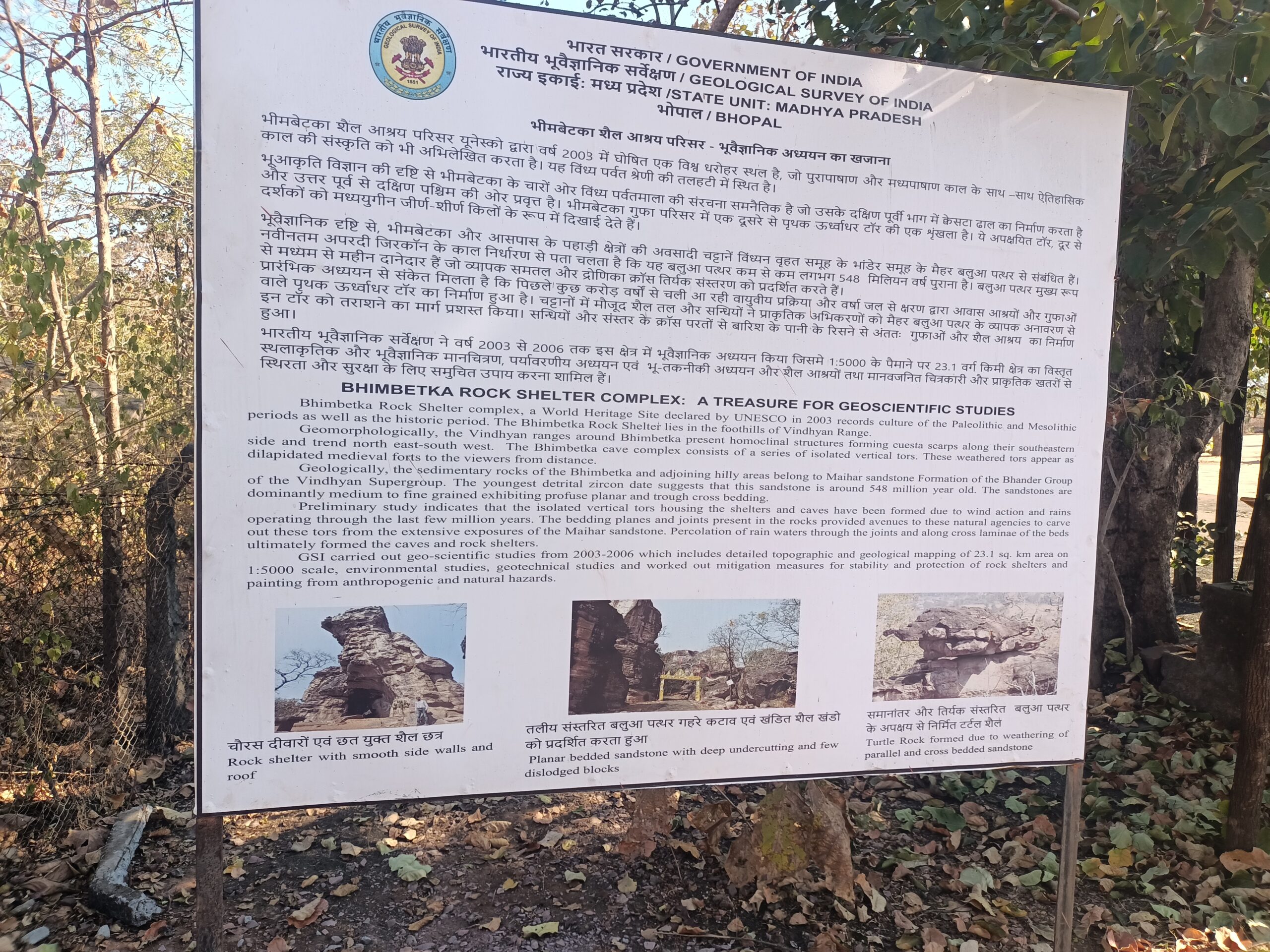 Bhimbetka Rock Formations in Madhya Pradesh state are from Paleolithic and Mesolithic periods. They are one of the World Heritage Sites in India declared by UNESCO in 2003. More content to be updated. Bhimbetka Rock shelter photos.