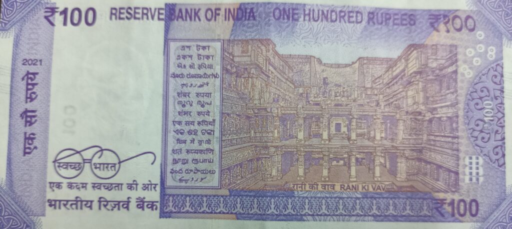 Monument on 100 rupee note – Issued in 2018 – It has image Rani Ki Vav on back side.
