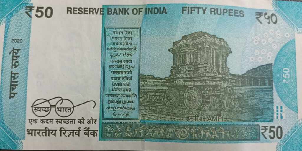 Monument on 50 rupee note– Issued in 2017 – It has image Hampi on back side.
