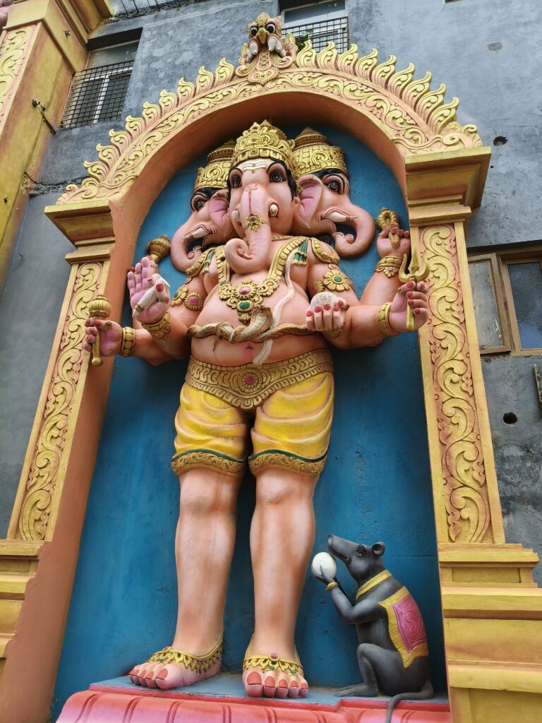 The temple complex has small temples of Lord Trimukha Ganapathy, Sri Manikya Nageswara Swamy, Lord Dattaavadhoota Dattatreya, Goddess Raja Rajeswari Devi, Sri Marakata Karya Siddhi Hanuman, Sri Patala Panchamukha Anjaneya Swamy, Sri Sesha Nagendra Swamy and Navagrahas. Sri Patala Panchamukha Anjaneya Swamy temple is in a basement and one of it’s kind. There is a huge prayer hall for gatherings and prayers and also huge idols of Ganesha, Sri Dattatreya Swamy and Hanuman at the entrance.