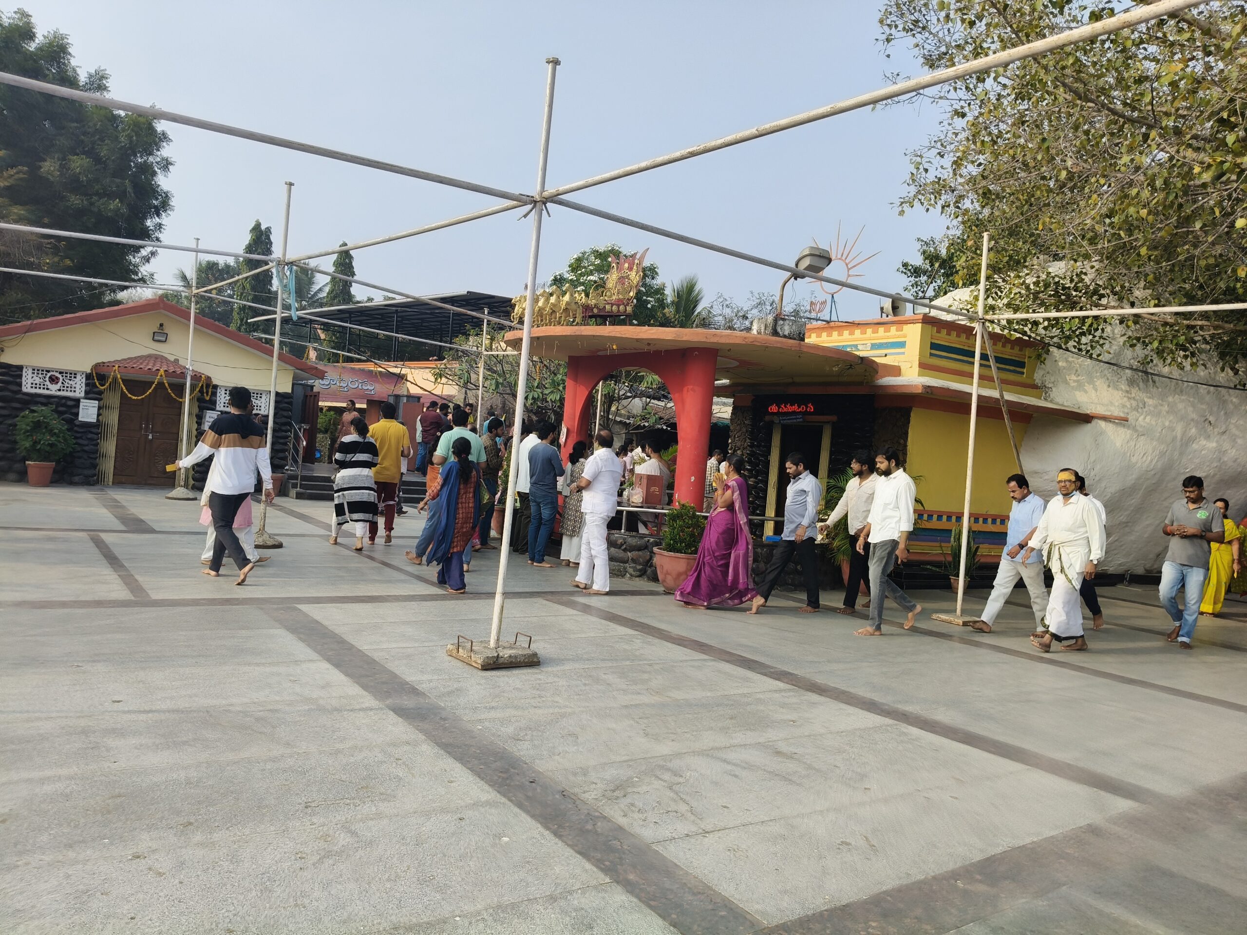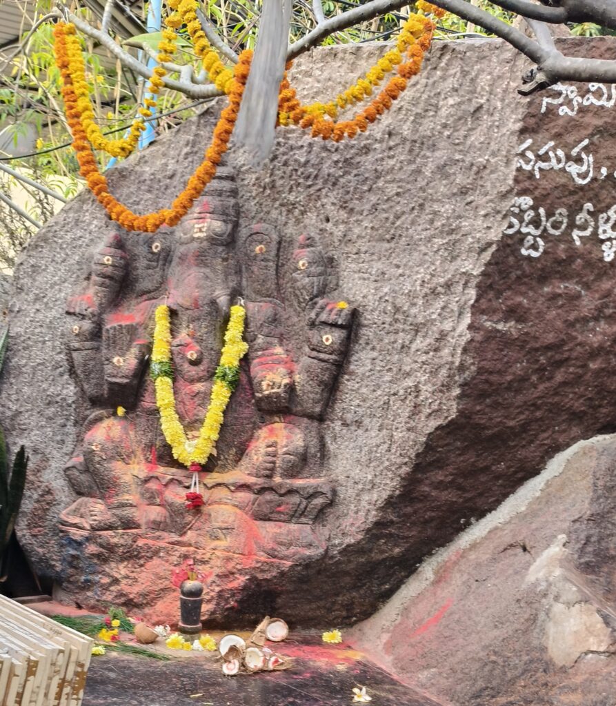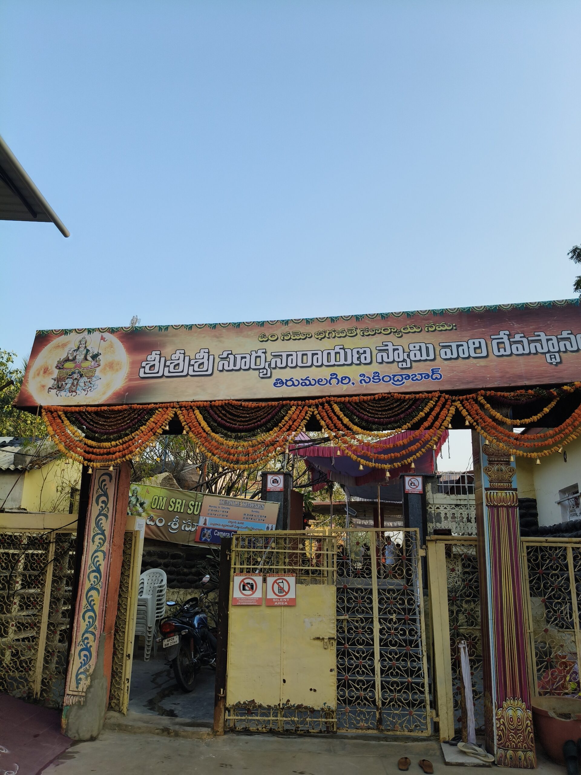 An idol of Lord Ganesha on the rock at entrance welcomes the devotees with his blessings. It also has smaller temples of Lord Siva(Lingam in the open), Goddess Saraswathi, Naga Devatha and Satyanarayana Swamy. There are seven horses in running pose on top of the temple. Annadanam is organized every Sunday and one can contribute Rs.5000/- for the same. The prasadam is prepared in the temple premises only and outside food is not allowed to be distributed in the temple. There is an Abhishekam every Sunday at 7 am in the morning and they charge Rs.516/- for the same. Makar Sankranthi, the day when sun enters Makar Raasi and Radha Sapthami, which is the birth thithi of Surya Bhagawan are celebrated in a grand way with special poojas and Maha Sowra Homam. The dates for 2025 are 14th January and 4th February.
