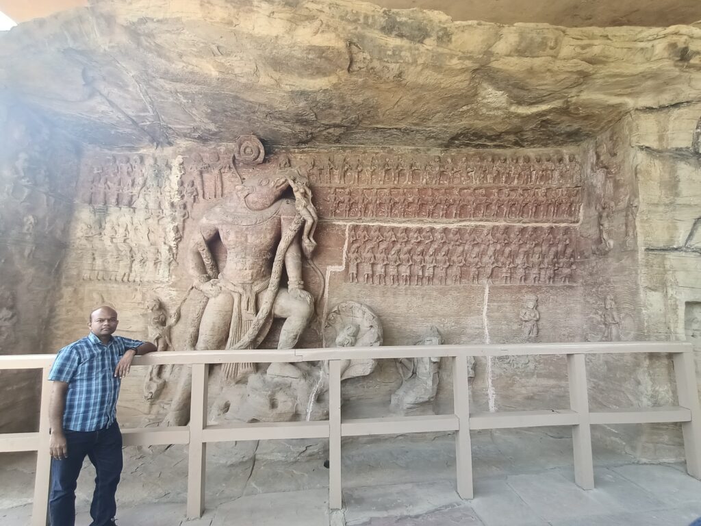 Two main sculptures stand out here, One of Varaha Swamy at Cave number 5 and the other of reclining(sheshasayi) Vishnu at Cave 13. The other caves are small with few sculptures. There is a Rs.40/- entry ticket and to be bought online. But can be bought at the ticket counter also. The entrance is around half kilometer from the ticket counter and could have been managed better. It would take around 1 to 1.5 hrs to cover all the caves.
