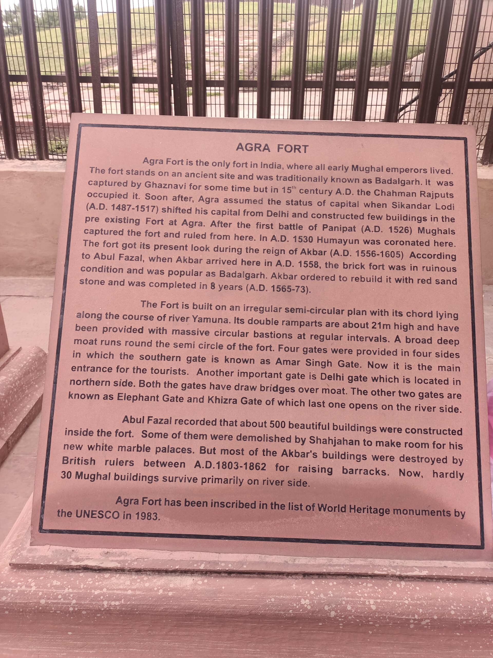 1. Agra Fort, Uttar Pradesh (1983) : Located in Uttar Pradesh state, this is the first monument to be inscribed from India and is the fort where all the early Mughal emperors lived. It got its present look rebuilt with Red Sandstone during the reign of Akbar. One can have a good view of Taj Mahal from here.